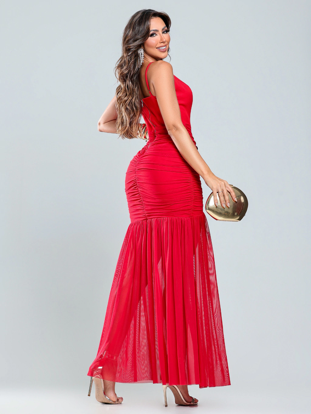 Vestido Longo Alcinha Tule Fenda - Zemira