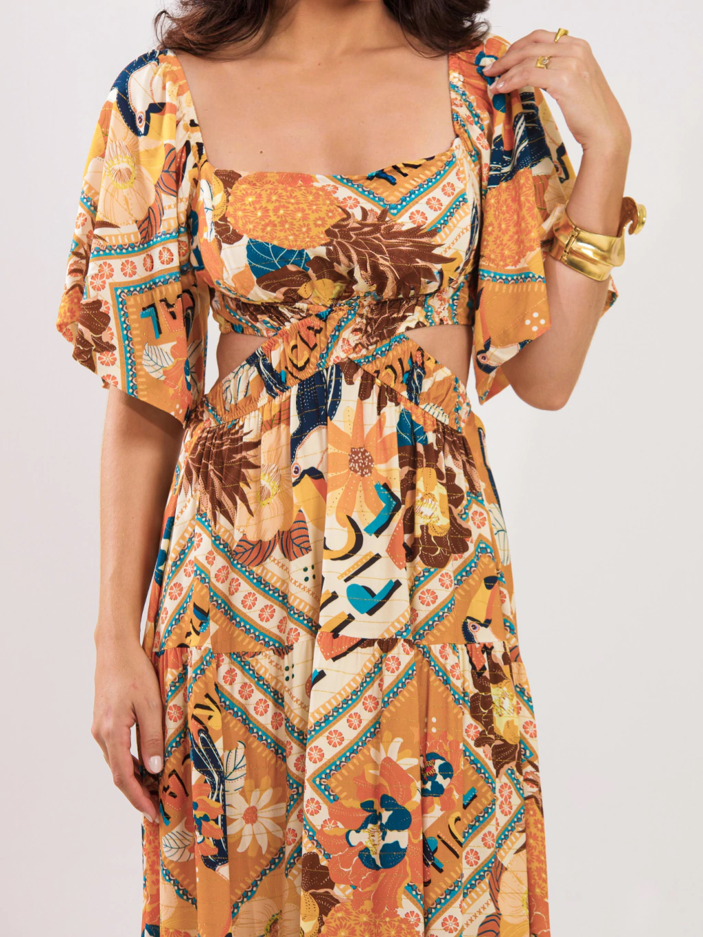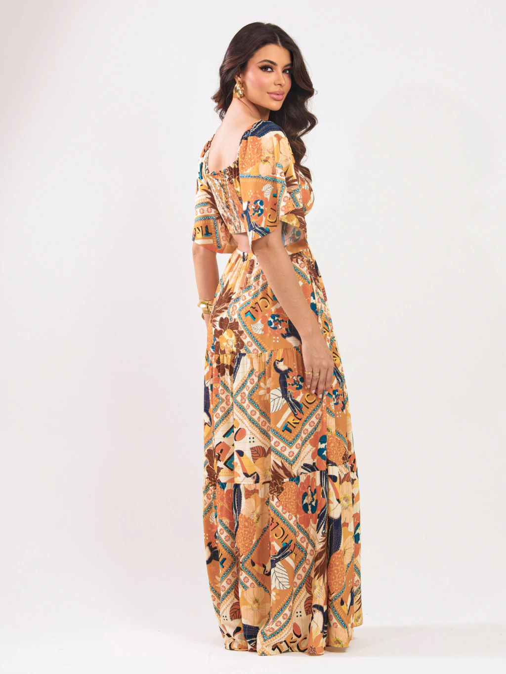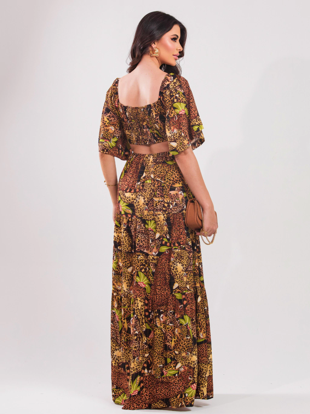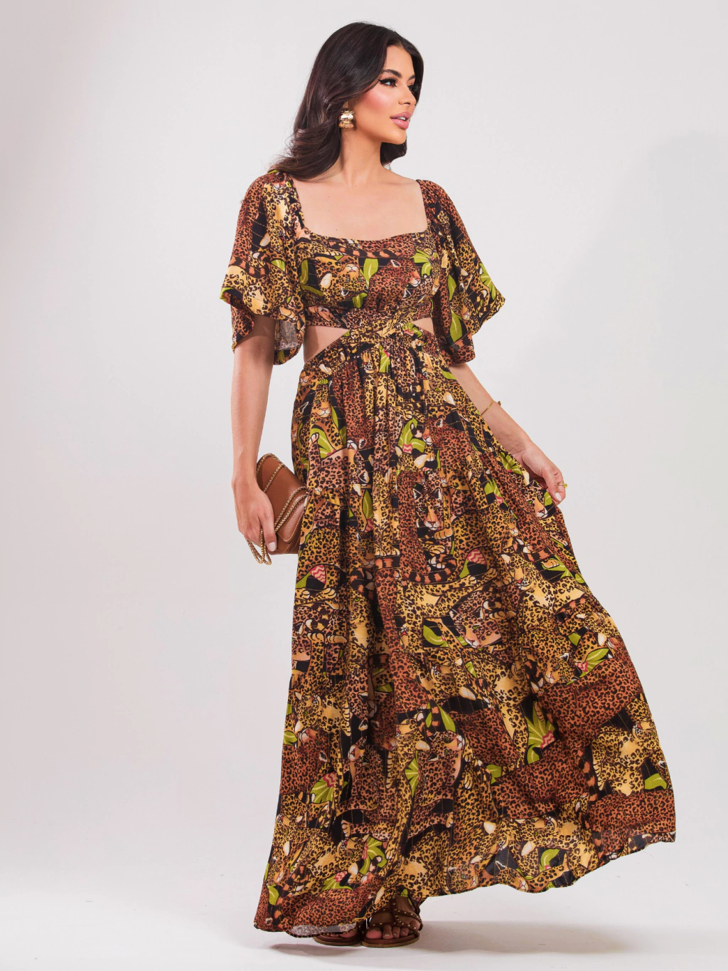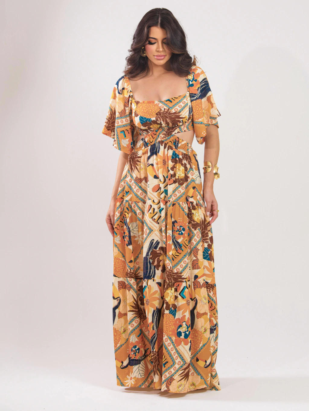 Vestido Longo Estampado Detalhe Cintura - Paola