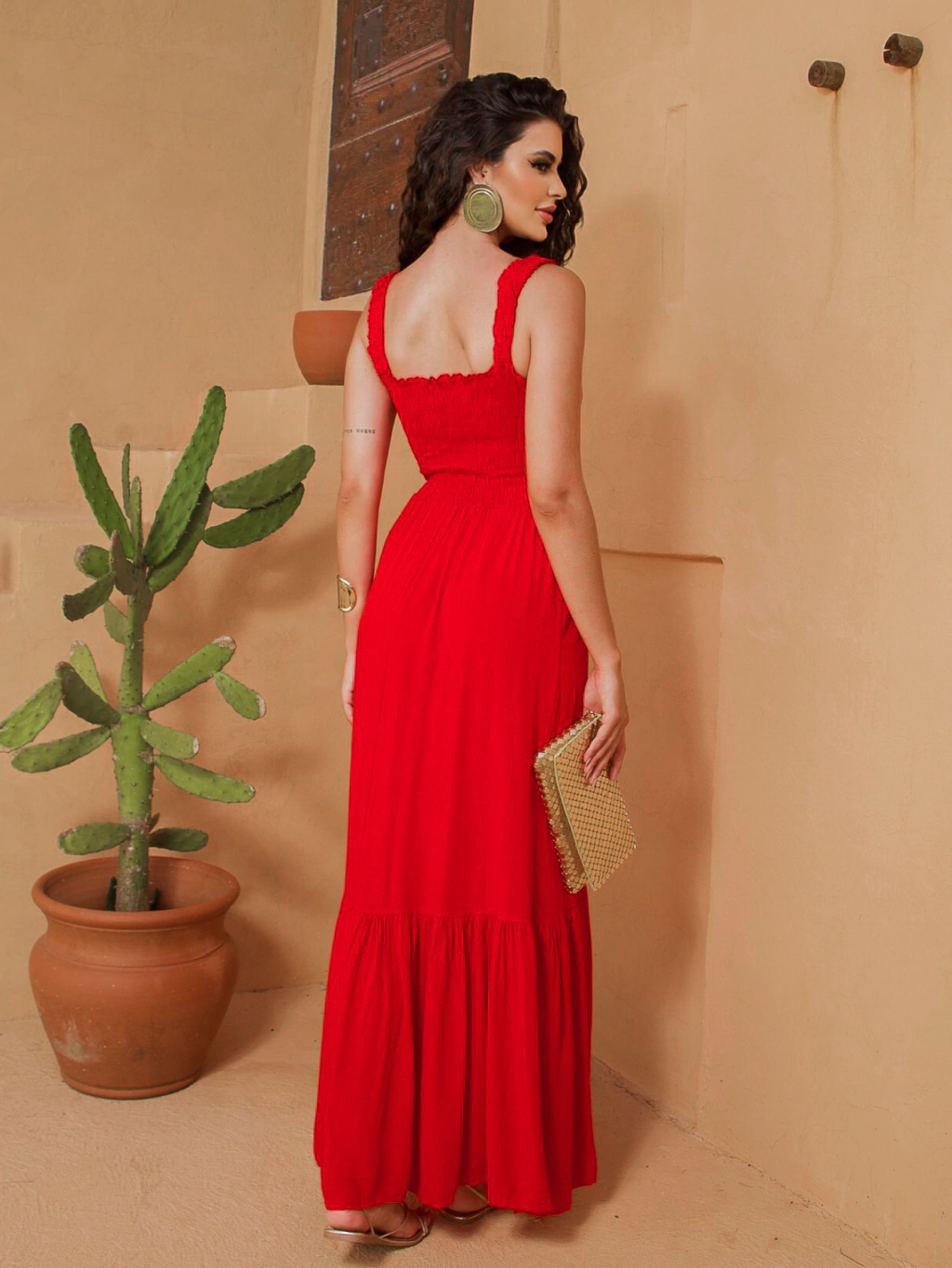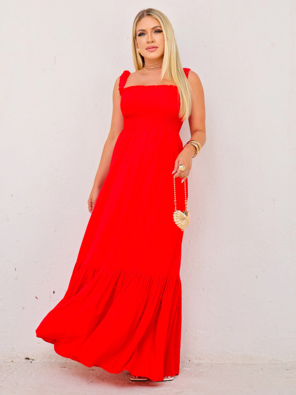 Vestido Longo de Alcinha com Elastex Liso - Monica